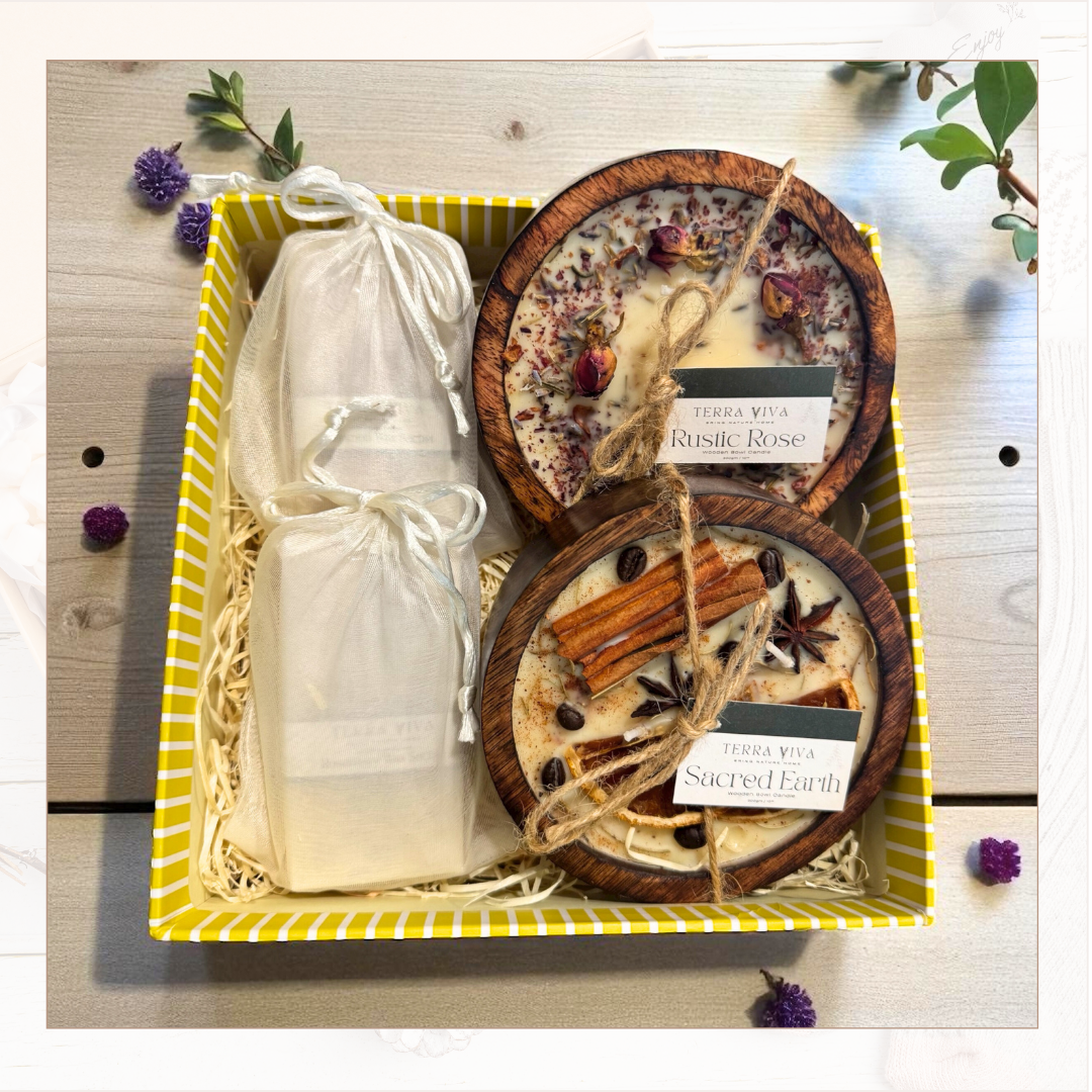 "At TerraViva, candlelight is more than glow—it’s a sensory escape. Each gift box blends artful wooden candles, lush succulents, and aromatic wax melts, creating moments of beauty, warmth, and nature. Gift timeless elegance; make every occasion soulful and sustainable."